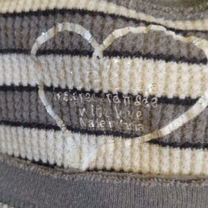 Rue 21 long sleeve cotton blend, gray & white striped, distressed waffle top M