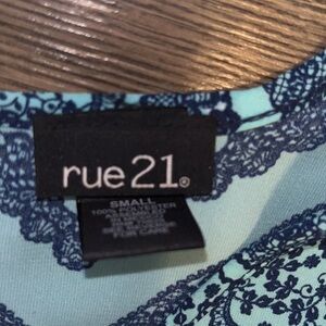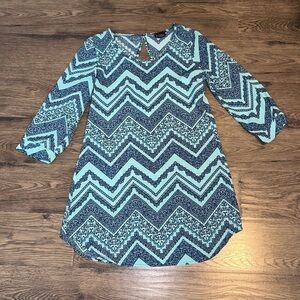 Rue 21 dress with 3/4 length sleeves and adorable cut out in the back. Chevron pattern in beautiful aqua color.