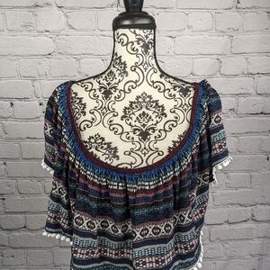 This is a women's brand new with tags off the shoulder dress that comes in a plus size 3x with a geometric print and is made by Rue21.