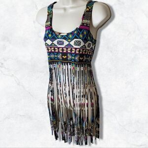 Rue 21 Fringe Aztec Boho Multicolor Cropped Tank Top