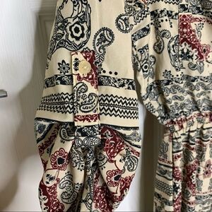 Size XS Length 34” Bust 16” flat Zipper front Button tie sleeves