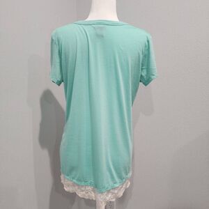 Rue 21 Womens Short Sleeve Top, Lace bottom & front pocket, Size XL, Teal
