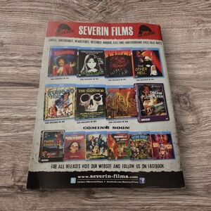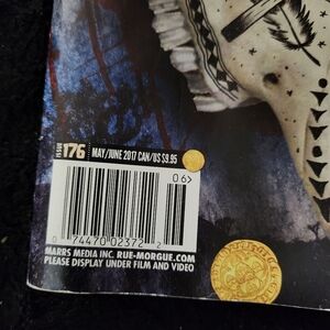 Pre-loved collectible horror magazine from May/June of 2017. Rue Morgue's Issue #176. It features articles on Anton LeVay, etc, and even the dark side of Disney. Magazine has some slight denting on front right side from storage.