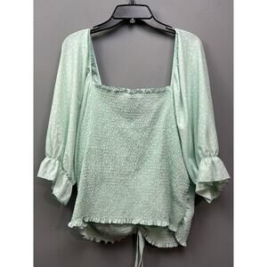 Rue Plus Shirt Womens 4X Mint Green Smocked Puff Sleeve Drawstring Floral Top