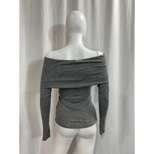 Rue Sophie 'Triomphe' Grey Top Size S: off-the-shoulder styling, lightweight jersey fabric.