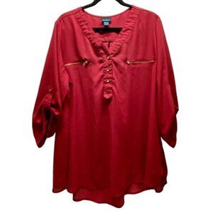 Rue+ V-Neck Tunic Women's 2X Maroon 3/4 Roll Tab Sleeves Lightweight Blouse EUC