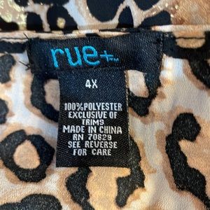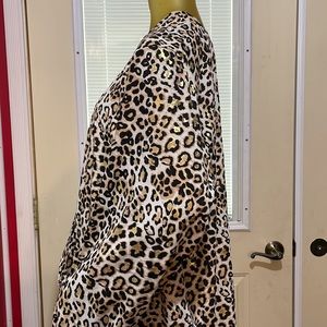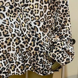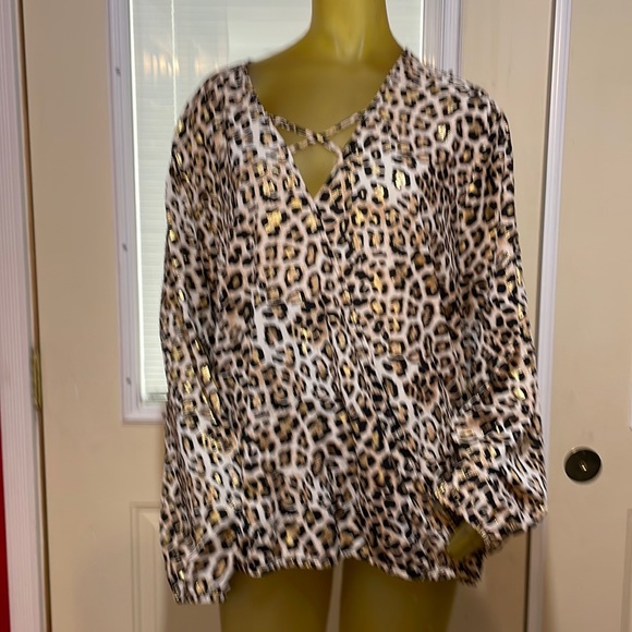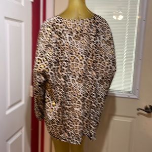EUC plus top. I really don't think this top has ever been worn. Tried on but never been worn. Awesome animal print cross over front. Long sleeves with elastic at end of sleeve. Sized 4X approximate measurements are armpit to armpit 29", side to side at hemline 30" with elastic in front half of hem. Back neck to hem 29"