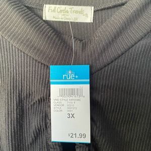 Rue21 Black Cropped Ruched Front Shirt Ribbed Knit Size 3X Plus NWT
