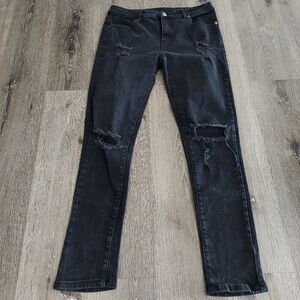 Rue21 Black Skinny Supreme Flex Distressed Jeans 34×32