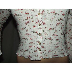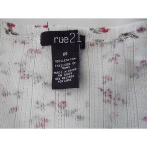 Rue21 Blouse Jr XS White rosebud floral pink ribbed v-neck knit top shirt cotton