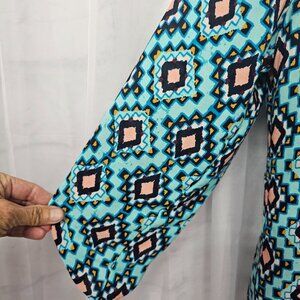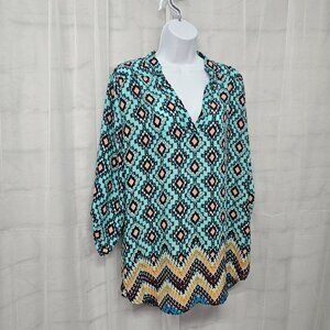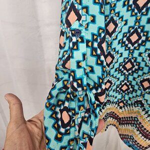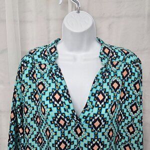 Rue21 Blue Peach Aztec Southwestern Boho Peasant Blouse Tunic L