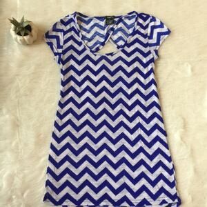 Rue21 Blue White Chevron Cap Sleeve Top S