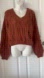 Chic brown V-neck sweater with cable knit design. Features stylish distressed details. Ideal for layering.