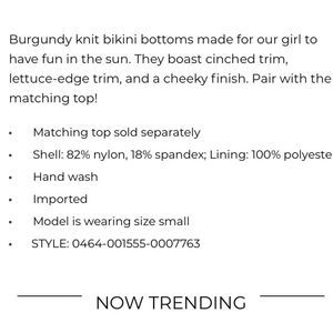 Rue21 Burgundy Cheeky Bikini Bottoms Small NWT