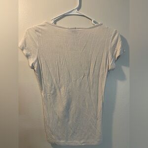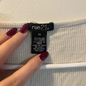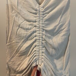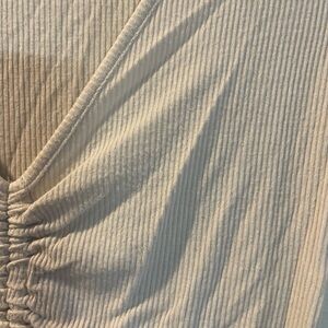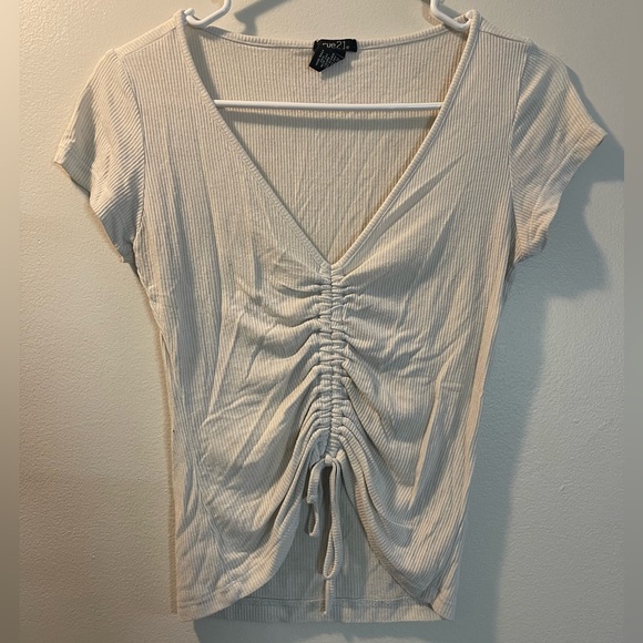 Rue21 Cream Ribbed V-Neck Drawstring Ruched Crop Top