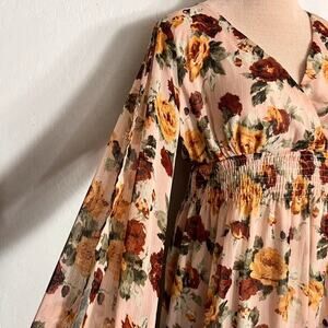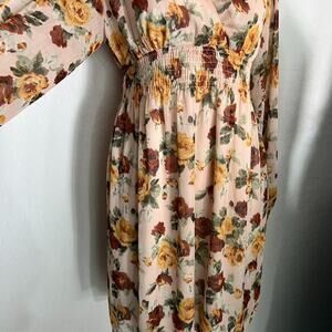 Rue21 Dress Womens Medium Yellow Cream Floral Long Sleeve Split Smock Waist