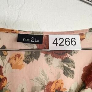 Rue21 Dress Womens Medium Yellow Cream Floral Long Sleeve Split Smock Waist Crossover