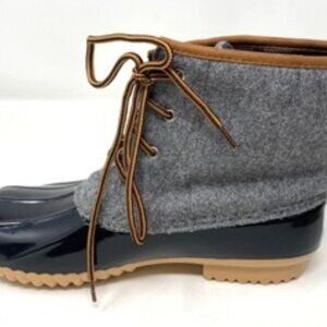 Step out in style this winter with these black and gray duckie flannel rain boots from Rue 21. These lace-up boots are perfect for women who want to stay fashionable and comfortable at the same time. The boots are made of all man-made materials and feature a rubber outsole for excellent traction on slippery surfaces. The boots come in size 8 and are suitable for winter weather. The lining and insole are made of fabric for added comfort. These boots are perfect for any occasion and can be paired with any winter outfit. Get your hands on these stylish Rue 21 boots and stay dry and fashionable this winter.