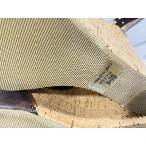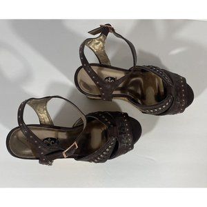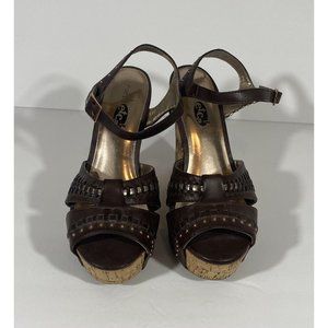 Rue21 Etc Shoes Wedge Open Toe Brown Sandal Wedge Heel Sz 7/8 Ankle Strap Studs