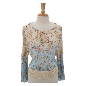 Rue21 Floral Crochet Boho Top S Sheer Long Sleeve Peasant Blouse Festival