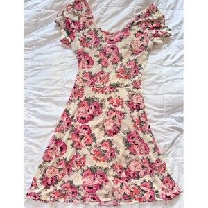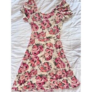 Rue21 Floral Skater Dress - Large - Pink Rose Print -Criss Cross Back 2015