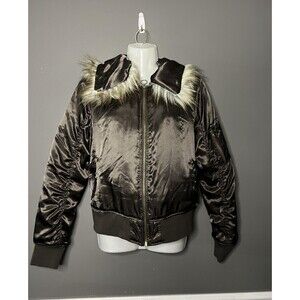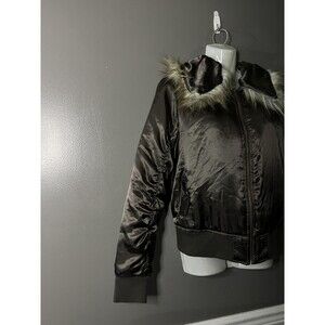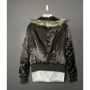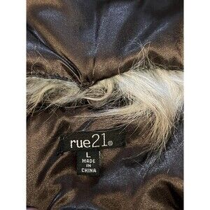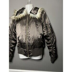 Rue21 Jacket Womens Large Black Faux Fur Hood Full Zip Bomber Puffer Coat