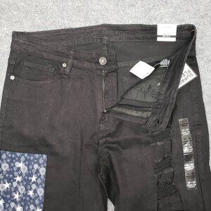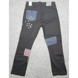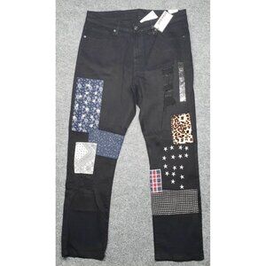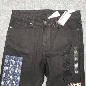 Rue21 Jeans Mens 36X32 Black Denim Supreme Flex Straight Distressed Patches New