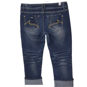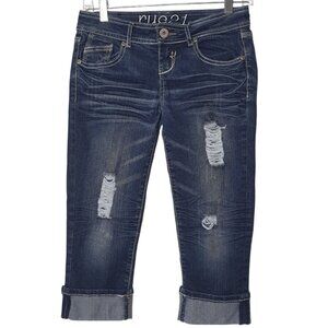 Rue21 Juniors Distressed Capri Jeans 1/2 Roll Cuff Thick Stitch Stretch Chic Y2K