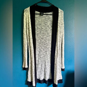 Rue21 long line duster style cardigan with contrasting black and grey color detail, knee length Never worn, size small