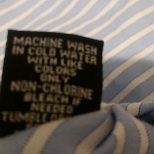 Machine wash in cold with like colors only. Only non-chlorine bleach if needed. Tumble dry low. Remove promptly. Warm iron if needed.