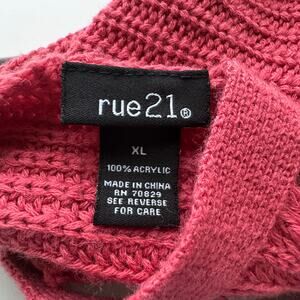Soft and stylish Rue21 oversized striped sweater featuring multicolor tones of burgundy, lavender, and cream. Distressed fringe hem and cutout neckline detail for a trendy boho-chic vibe.