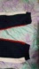 Navy joggers with white and red accents. Comfortable and stylish for everyday wear.