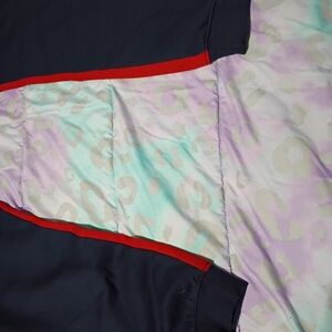 Navy joggers with white and red accents. Comfortable and stylish for everyday wear.