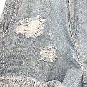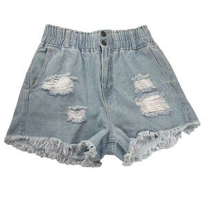 Rue21 PaperBag High Rise Denim Jean Shorts Women’s Size 12 Distressed Raw Hem.