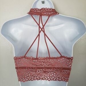 Rue21 Pink Lace Halter Bralette Strappy Back V-neck Girly Whimsical Cottagecore