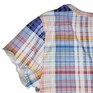 Rue21 Plaid Crop Top Pastel Button Up Short Sleeve Blue Pink White Orange Small