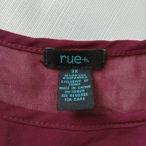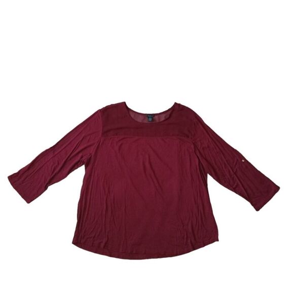 Rue21 Plus Size Maroon Red Sheer Mesh Yoke Roll Tab Sleeves Casual Shirt 3X