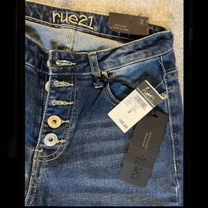 Rue21 Premium 5 Button High Rise Crop Flare Fringe Hem Blue Jeans NWT