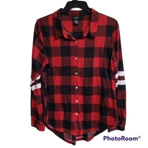 Rue21 red and black buffalo plaid long sleeve button down casual top