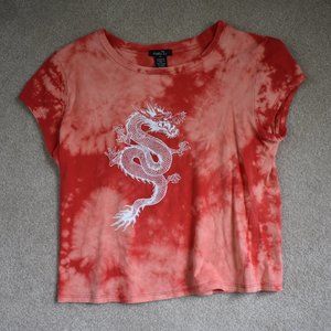 Rue21 Red Tie Dye Chinese Dragon Crop Top Medium