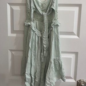 Rue21 seafoam green dress, semi-open back, spaghetti straps, adjustable straps, adjustable tied back