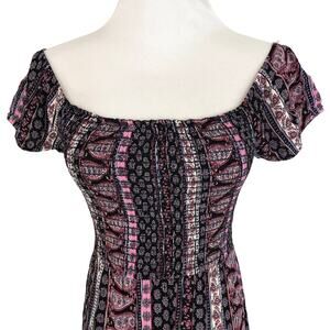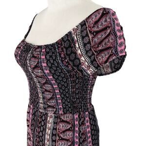 Rue21 Smocked Dress Knee Length Scoop Neck Size Medium Paisley Motif