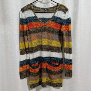 Rue21 Stripped Knit Long Sweater V Neck Multi Color XL Hippie Chic Women's