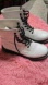 Chic white combat boots. Contrasting black laces. Ideal for a bold statement.