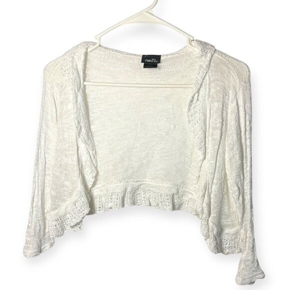Rue21 White Knit Cropped Bolero Cardigan – Size Medium