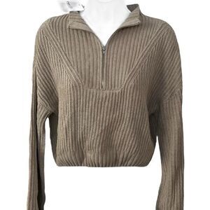 Rue21 Women's 1/4 Zip Cable Knit Sweater Beige Lightweight Semi-Cropped …