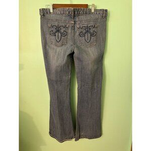 Rue21 Womens Bootcut Jeans Size 16 Medium Wash Embroidered Back Pockets Distress