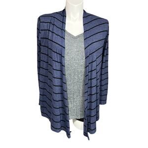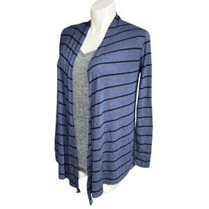 Cardigan Sweater Striped Open Drape Front Knit Stretch Blue Rue21