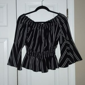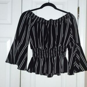 Rue 21 off-the-shoulder black and white striped top. SZ XL NWOT