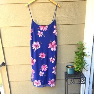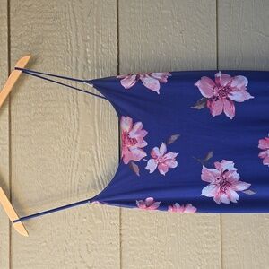EUC Navy blue with pink flowers Fits TTS spaghetti straps lined so it isn't see through